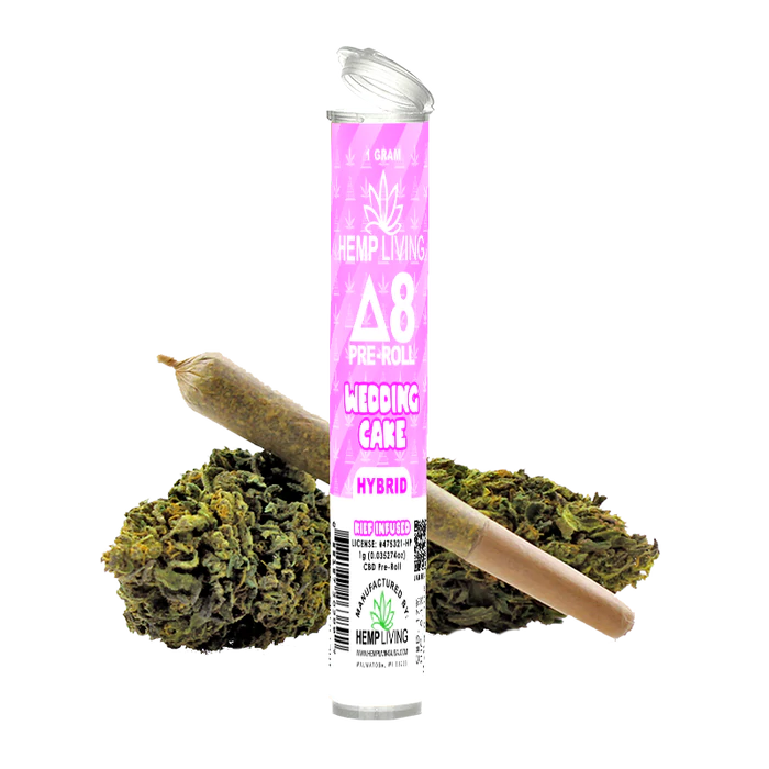 Hemp Living – Delta 8 Flower 1g Pre-Roll De – Wedding Cake High Potency Kief Infused