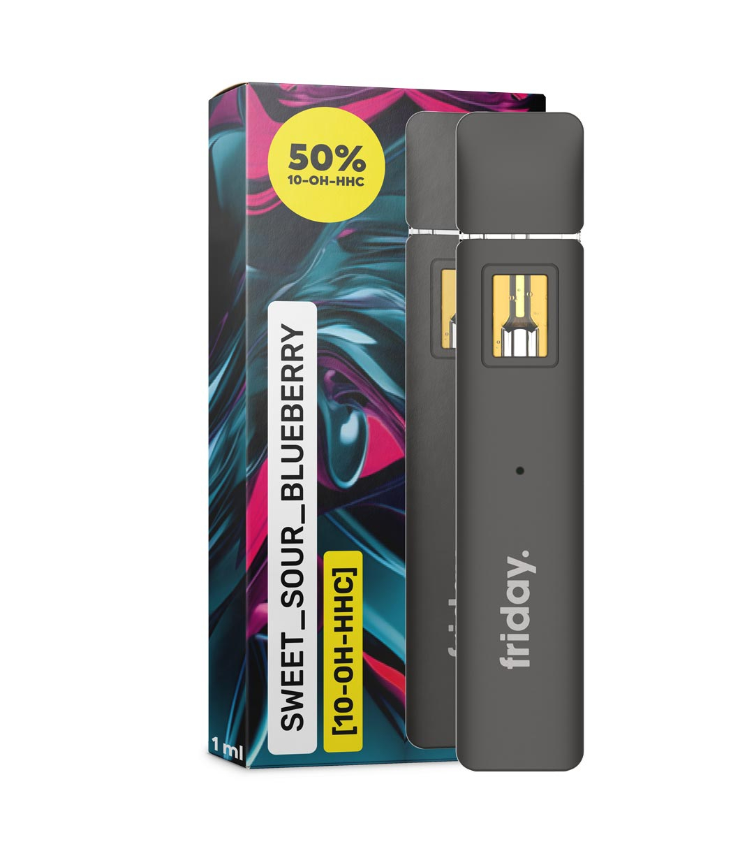 Before we plunge into the specifics of this vape, it’s essential to understand OH-HHC, or Hydroxy Hexahydrocannabinol. This cannabinoid is gaining popularity for its potential effects, which some users find similar to both THC and CBD, but with its own distinct twist. The Friday 10-OH-HHC Vape harnesses this unique compound to elevate your vaping experience.